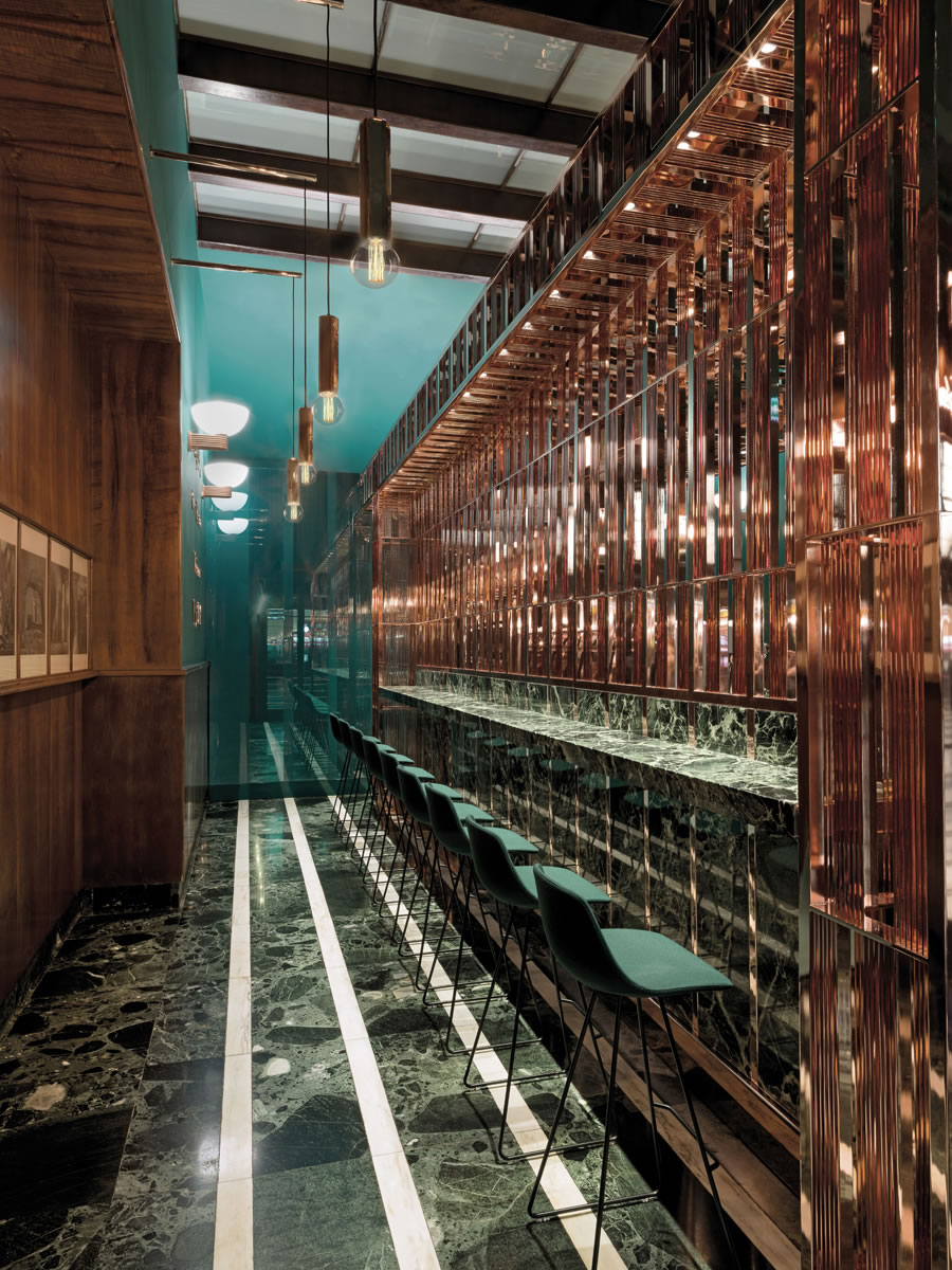 Il nuovo locale VyTA a Firenze, progettato da Daniela Colli che ha ridisegnato la Sala d’Attesa della stazione attraverso l’uso di materiali di pregio, tra marmi verdi e finiture in rame, boiserie d’epoca e il soffitto a travi in legno e vetro, che strizzano l’occhio all’art déco e rendono giustizia alla memoria di Santa Maria Novella