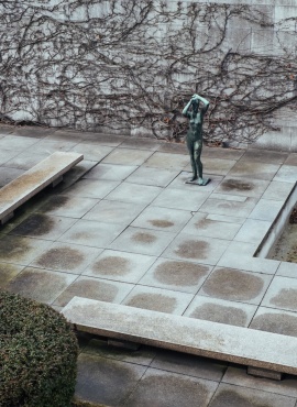 Guardare Berlino dall’alto confonde le idee: all’inizio sembra una città normale. Un “centro” al centro, con un reticolo di strade che si diradano verso la periferia, un fiume. Ma in realtà, guardando più da vicino, si nota che la città è doppia: due centri, due torri della televisione, due porti. Nella metà esatta, un gigantesco fazzoletto verde e una porta: il Tiergarten e la porta di Brandenburgo. È significativo che al centro di una città che è stata divisa per quarant’anni non ci sia una cattedrale o un castello ma una costruzione simbolo di passaggio. E infatti il centro geografico di Berlino, come lo conosciamo noi adesso, è finto – cioè è stato ricostruito da zero dopo la caduta del muro. Forse per questo uno dei maggiori musei della città, l’Haus der Kulturen der Welt, è stato edificato in piena guerra fredda con intenti pacificatori. Dal suo terrazzo si può ammirare sia la cima del vicino parlamento (il Reichstag) come la punta della lontana Alex, la torre della televisione costruita dalla DDR. L’HKW ospita percorsi tematici a metà tra l’antropologia e l’arte contemporanea: non solo l’annuale Transmediale ma anche temi solitamente inesplorati dall’arte (una mostra dedicata alla scimmia, così come un workshop su come perdere tempo su internet).